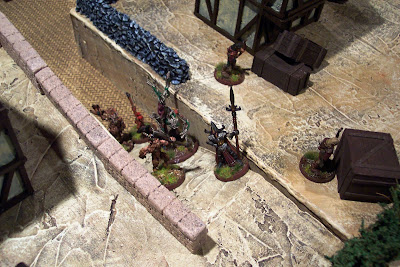 Took a gob of photos from our Fantasy playtest games yesterday here at Fausthaus. Unfortunately, I'm a dumbass and most of the best battle report pics were blurry. I need to get a small stand for my camera. So, until I do the write up on our games, feast your eyes on what I have below. I'll explain what's what in the battle reports.